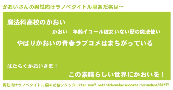 | 女子向けラノベタイトル風あだ名 | 『かおいの雑貨屋さん』 |