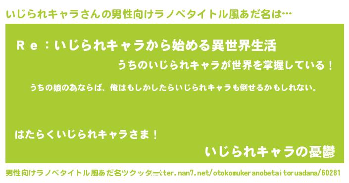 | 意味不明あだ名 | 『いじられキャラフォーエバー』 |
