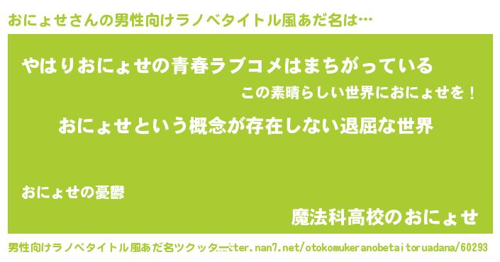 | 女子向けラノベタイトル風あだ名 | 『異世界で失敗しない100のおにょせ』 |