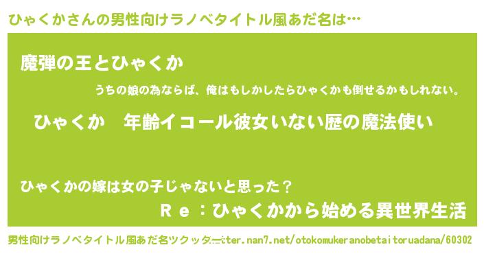 | 意味不明あだ名 | 『ヨモギ科ひゃくか属』『自称ひゃくか』 |
