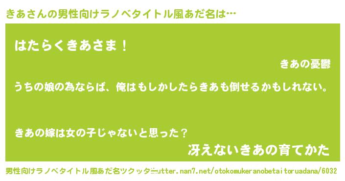 きあさんの男性向けラノベタイトル風あだ名をツクッター!