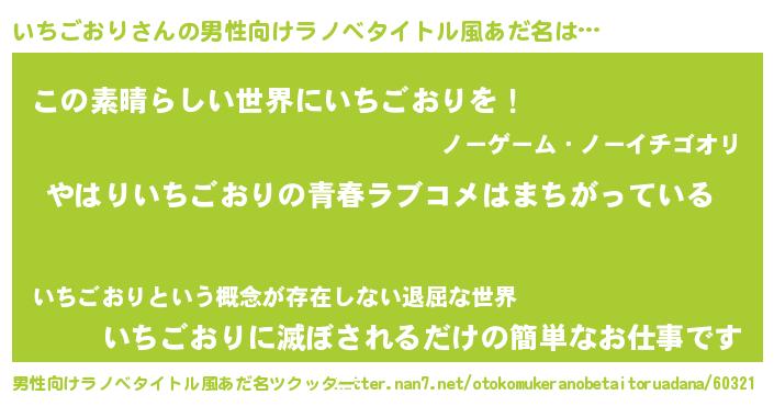 | 女子向けラノベタイトル風あだ名 | 『いちごおりの雑貨屋さん』 |
