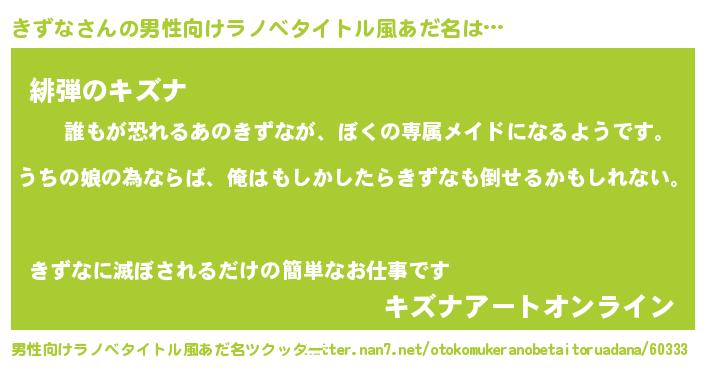 | 女子向けラノベタイトル風あだ名 | 『きずな伯爵の花嫁』『きずなの契約王妃』 |