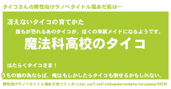 | 胡散臭い通販商品みたいなあだ名 | 『テレビで話題の高麗人参…その名も「タイコ」』 |
