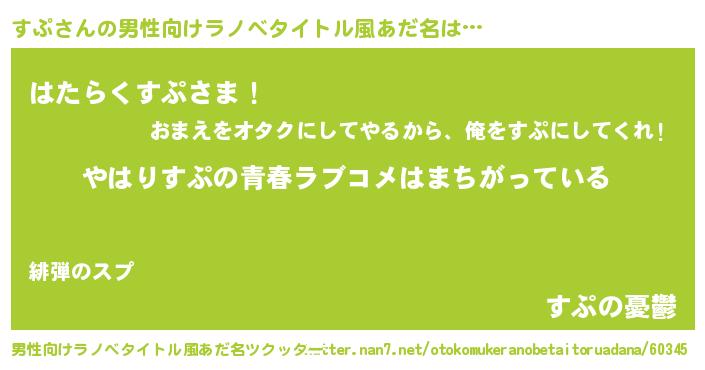 | ヘコむあだ名 | 『豆乳』『すぷにゅー』『すぷ(苦笑)』 |