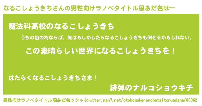 | 女子向けラノベタイトル風あだ名 | 『悪役なるこしょうきちに転生したようですが、知った事ではありません』 |