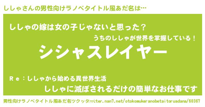 | ヒーロー風カッコイイあだ名 | 『魔戒騎士シシ』『最強戦士シシャ』 |