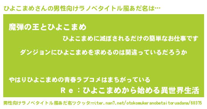 | 女子向けラノベタイトル風あだ名 | 『ひよこまめは平凡を望む』 |