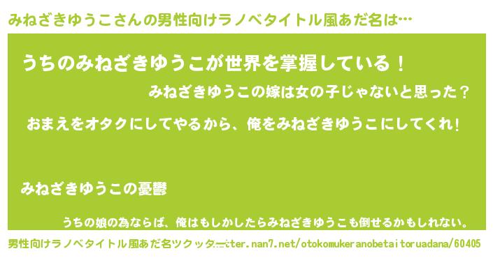 | 胡散臭い通販商品みたいなあだ名 | 『お金では代えられない隕石のかけら…その名も「みねざきゆうこ」』 |