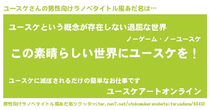 | 女子向けラノベタイトル風あだ名 | 『乙女ゲームの破滅フラグしかない悪役ユースケに転生してしまった…』 |
