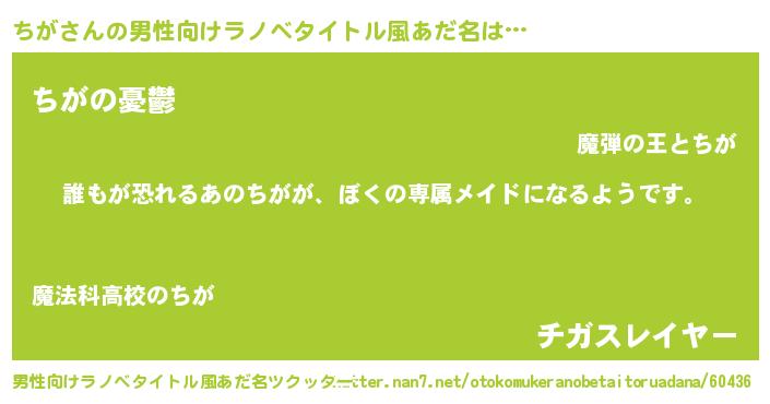 | 女子向けラノベタイトル風あだ名 | 『ちがの契約王妃』『ちが姫と円卓の騎士』 |