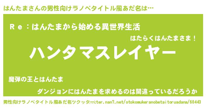| ヒーロー風カッコイイあだ名 | 『超時空戦士ハンタマ』『銀牙騎士ハン』 |