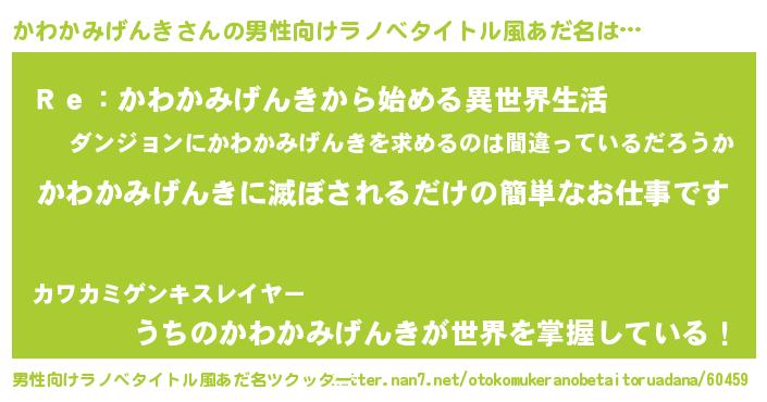 | 女子向けラノベタイトル風あだ名 | 『横柄かわかみげんきと宰相陛下』 |