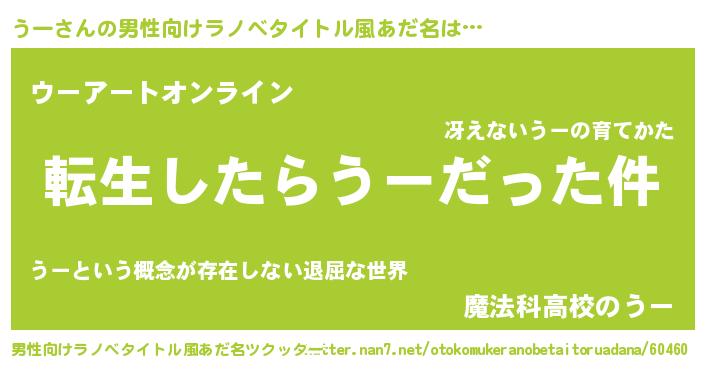 | 胡散臭い通販商品みたいなあだ名 | 『モテモテ間違いなし水晶球…その名も「うー」』 |