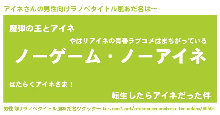 | 女子向けラノベタイトル風あだ名 | 『アイネ恋絵巻』『アイネの玉の輿計画!』 |