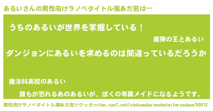 | 胡散臭い通販商品みたいなあだ名 | 『信頼と実績のネックレス…その名も「あるい」』 |