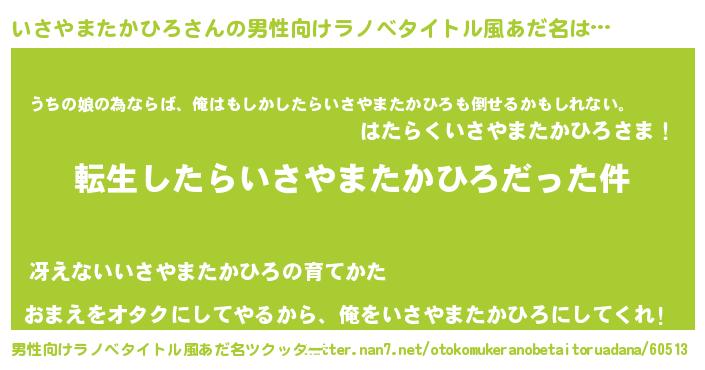 | 肩書あだ名 | 『いさやまたかひろ上級大将』 |
