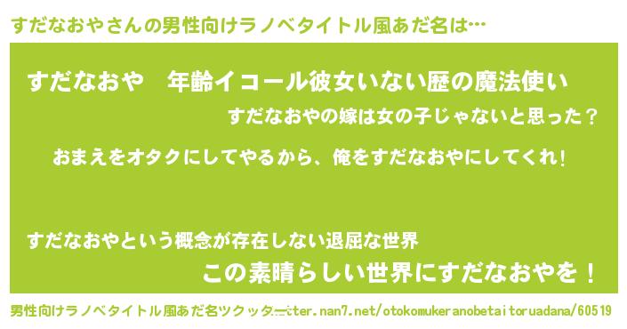 | 女子向けラノベタイトル風あだ名 | 『すだなおや夫妻のなれそめ』 |