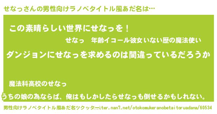 | 女子向けラノベタイトル風あだ名 | 『せなっは平凡を望む』 |