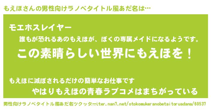 | 意味不明あだ名 | 『住所不定無職もえほ(85歳)』『自称もえほ』 |