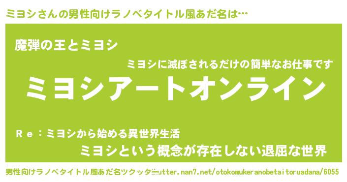 | 意味不明あだ名 | 『ペロリンミヨシ』『永久保存ミヨシ』 |