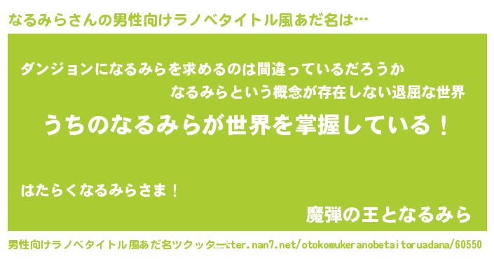 | ヒーロー風カッコイイあだ名 | 『天弓騎士ナル』『仮面ナルダー』 |