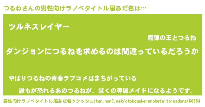| ヘコむあだ名 | 『つる太郎』『つるね(苦笑)』 |