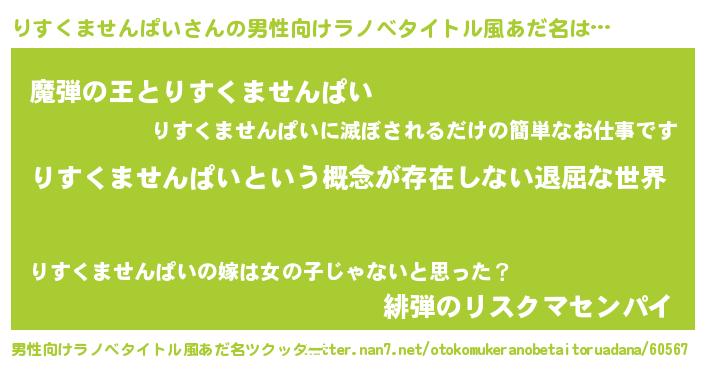 | ヒーロー風カッコイイあだ名 | 『ネオリスクマセンパイ』『仮面リスダー』 |