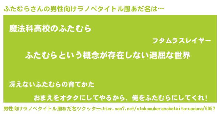 | 胡散臭い通販商品みたいなあだ名 | 『絶対に幸福をもたらす健康食品…その名も「ふたむら」』 |