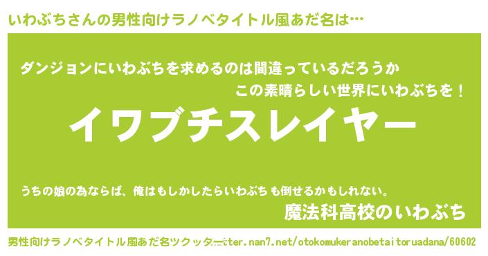 | 胡散臭い通販商品みたいなあだ名 | 『信頼と実績のサプリメント…その名も「いわぶち」』 |