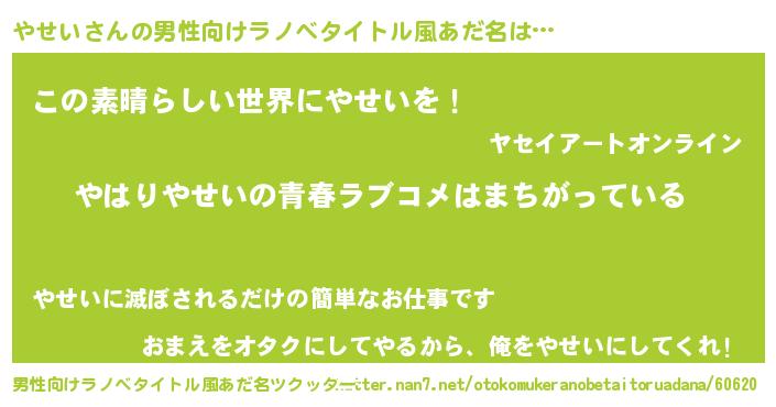 | 胡散臭い通販商品みたいなあだ名 | 『世界が平和になる高級そうな壺…その名も「やせい」』 |