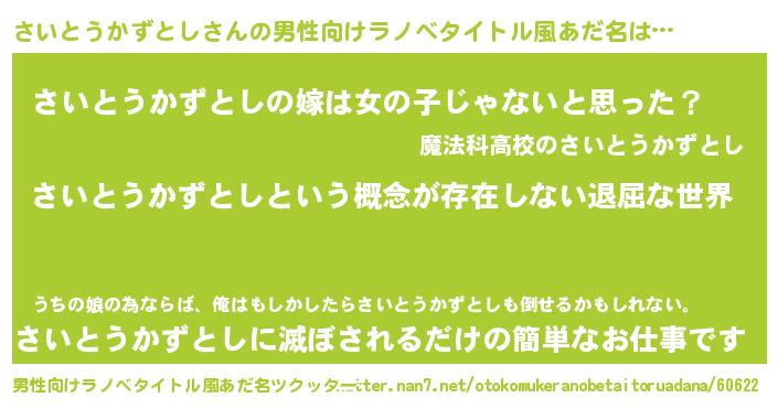 | 意味不明あだ名 | 『永久保存さいとうかずとし』 |