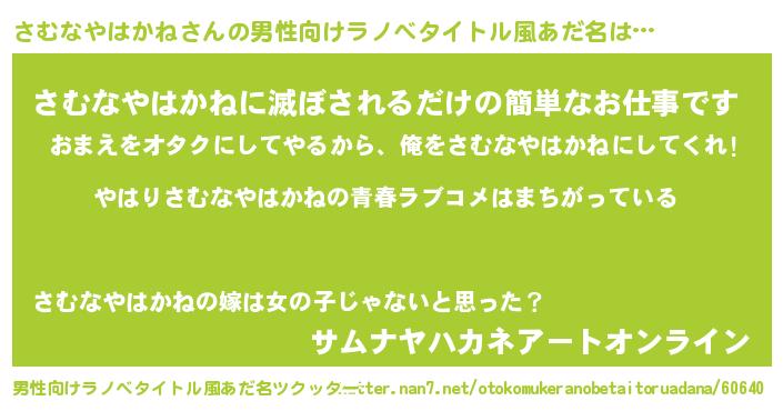 | 女子向けラノベタイトル風あだ名 | 『さむなやはかねの雑貨屋さん』 |