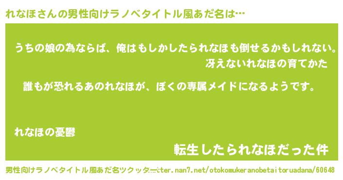 | ヒーロー風カッコイイあだ名 | 『ネオレナホ』『ウルトラれなほマン』 |