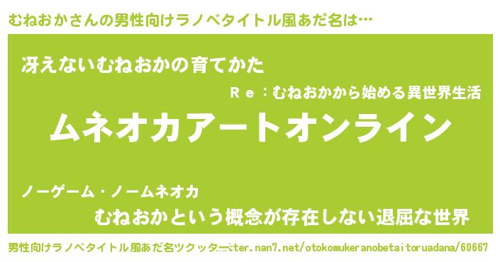 | ヘコむあだ名 | 『むねにゅー』『むねおか(笑)』 |