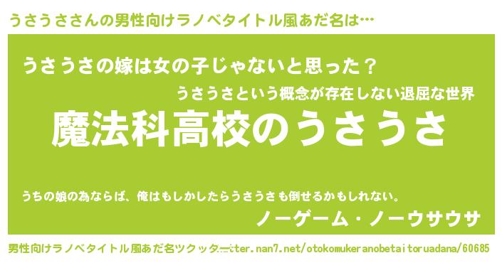 | 女子向けラノベタイトル風あだ名 | 『うさうさアンティーク』 |