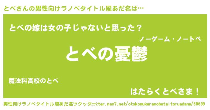 | 女子向けラノベタイトル風あだ名 | 『(仮)とべのやんごとなき事情』 |