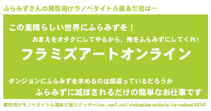 | 意味不明あだ名 | 『ペロリンふらみず』『自称ふらみず』 |