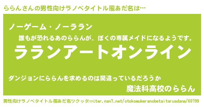 | 女子向けラノベタイトル風あだ名 | 『ららん姫と円卓の騎士』 |