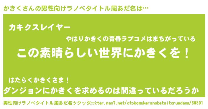 | ヒーロー風カッコイイあだ名 | 『仮面カキダー』『暗黒騎士カキ』 |