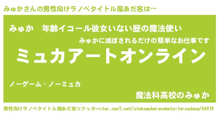 | 胡散臭い通販商品みたいなあだ名 | 『億万長者になれるブレスレット…その名も「みゅか」』 |