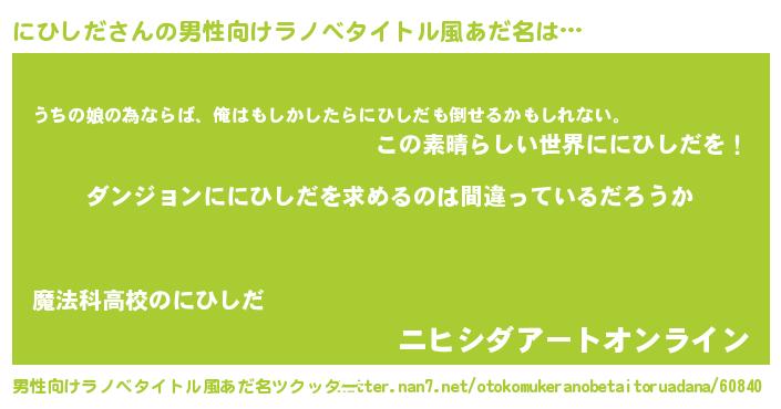 | 女子向けラノベタイトル風あだ名 | 『にひしだは平凡を望む』 |