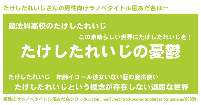 | 女子向けラノベタイトル風あだ名 | 『(仮)たけしたれいじのやんごとなき事情』 |