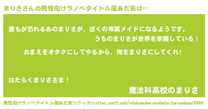 | ヘコむあだ名 | 『まりさ(遠い目)』『レバニラ』 |