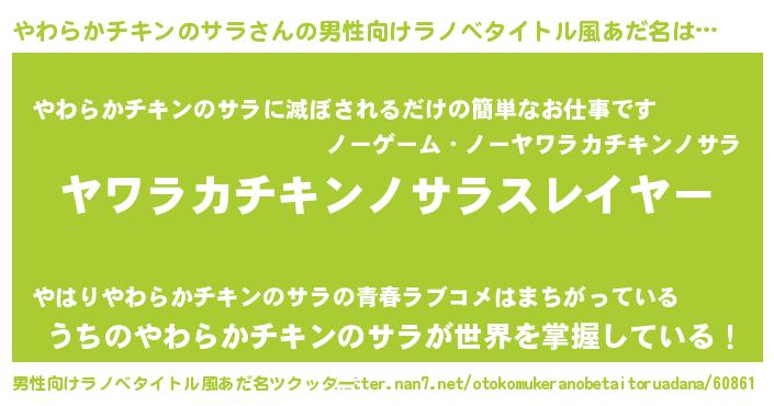 | 欧米人風あだ名 | 『トリンドルやわらかチキンのサラ』 |
