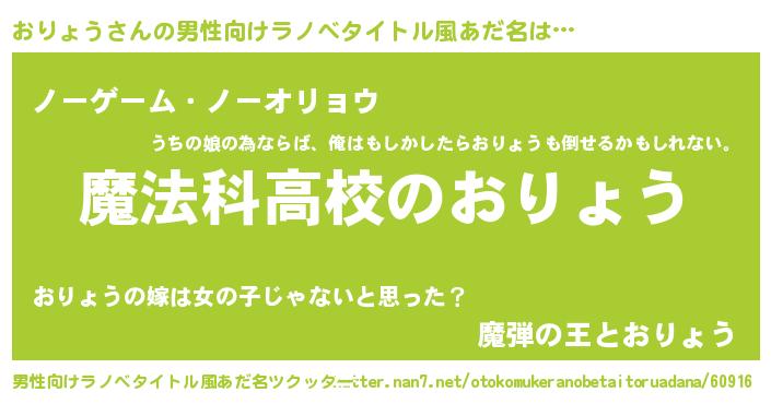 | 肩書あだ名 | 『おりょう閣下』『おりょう助教授』 |