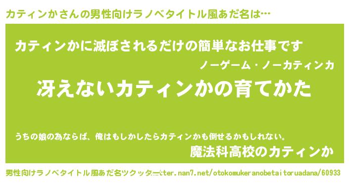 | 女子向けラノベタイトル風あだ名 | 『男装カティンかの憂鬱な任務』 |