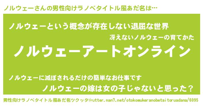 | 女子向けラノベタイトル風あだ名 | 『誰かこのノルウェーを説明してください! ~契約から始まるウェディング~』 |
