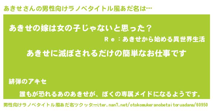 | 意味不明あだ名 | 『とにかく怪しいあきせ』『自称あきせ』 |