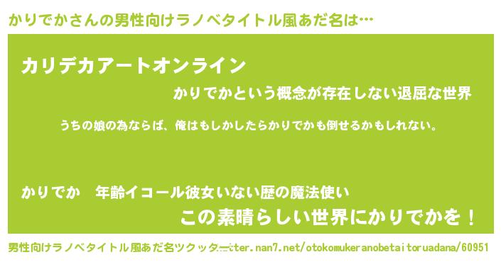 | 胡散臭い通販商品みたいなあだ名 | 『世界が平和になる高級そうな皿…その名も「かりでか」』 |